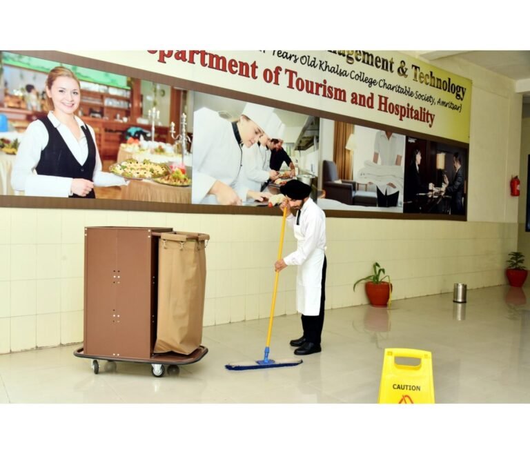 Khalsa College of Engineering and Technology is among the Top Hotel Management Colleges in Punjab, India that makes you equipped with the knowledge about management of a hotel’s operations including management of hotel staff, business management, upkeep and sanitary standards of hotel facilities, guest satisfaction, and service. Marketing, Sales Management, Revenue Management, Financial Accounting, Purchasing, etc. are the other related concepts that are taught to the students of Hotel Management. Hence, enroll yourself at Khalsa College of Management and Technology and take the privilege to study in the Best Hotel Management College in Amritsar
